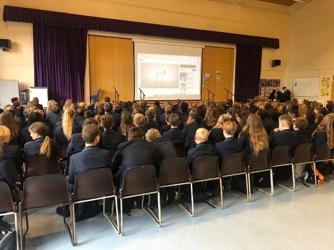 BackZidane and Harrison led interactive year group assemblies on internet safety and social media awareness to Year 7 and Year 8 students.